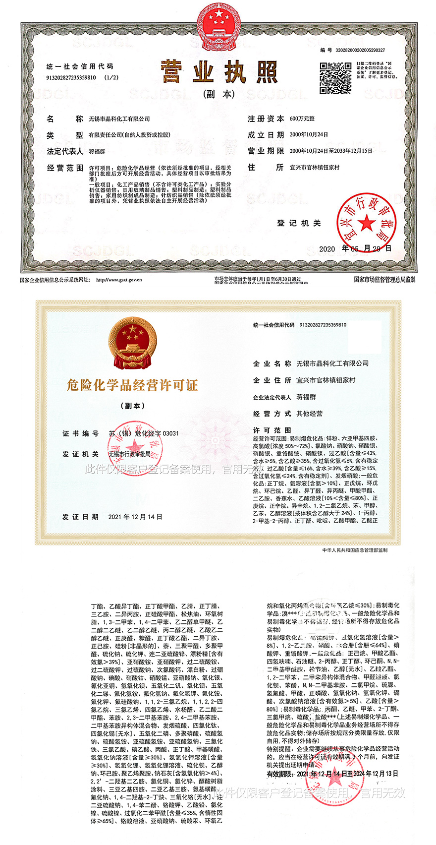 無錫市晶科化工有限公司創建于2000年,公司占地面積28.8畝,建筑面積13800平方米。是專業生產化學試劑的廠家,年生產,銷售各類化學試劑5000多萬元。